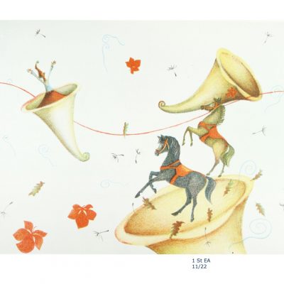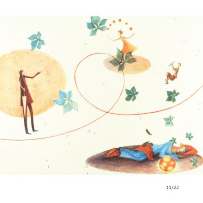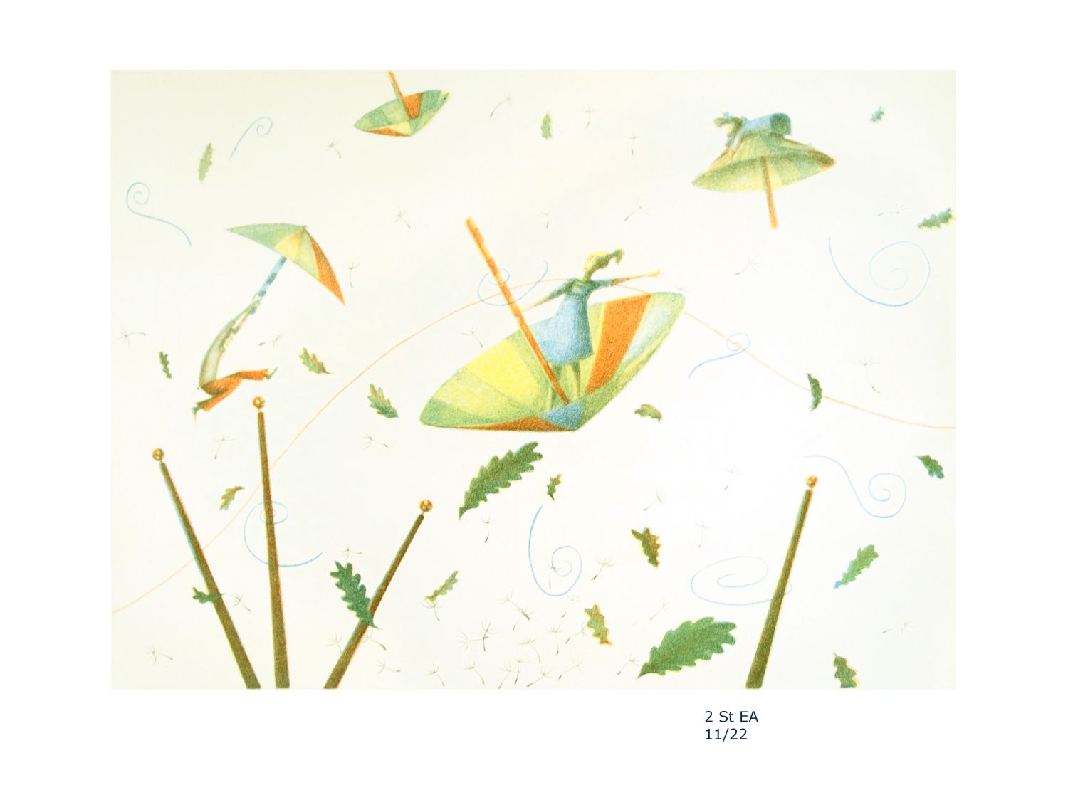 Der Verbindungsgang U1/U2 am Praterstern ist 60m lang und Susanne Zemrosser plazierte dort unter dem Titel „Einen Traum zu träumen und mit anderen zu teilen“ ein riesiges Emailgemälde. Als gelernte Druckgraphikerin beschloss sie, ihr Monumentalgemälde in das kleinere Format der Lithographie zu übertragen und eine Litho-Mappe zu produzieren. So entstanden im Litho-art 10 Drucke mitt jeweils 6 Farben.